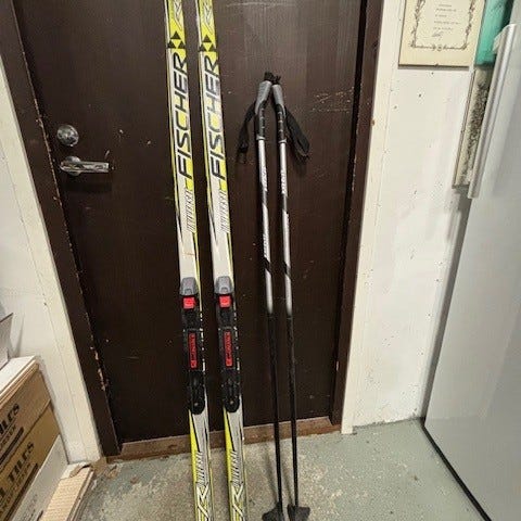 Fischer sukset 120 cm ja sauvat 90cm. Kulumaa löytyy, mutta hyvässä kunnossa vielä seuraavalle hiihtäjälle.