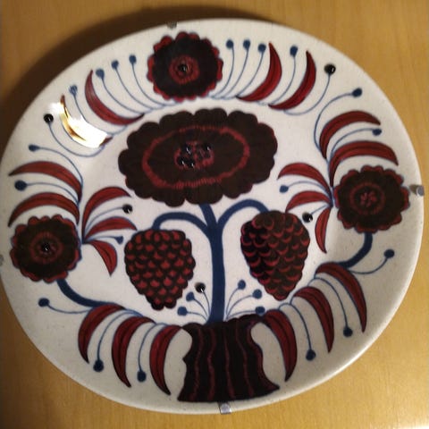 Lautanen on säilytetty koko ajan kaapissa suojattuna, eikä se ole ollut esillä. Kunto on kuin uusi – ei naarmuja, halkeamia tai muita käytön jälkiä.