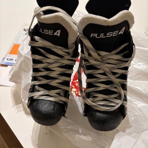 Pulse 4 Jääkiekko luistimet lasten koko 28. Luistimet ovat ehjät, samoin nauhat. Sisämitta pohjallisesta mitattuna 19 cm.