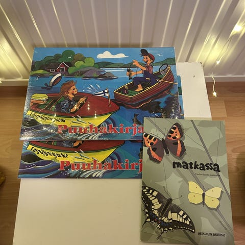 Uudenveroiset puuhakirjat. Pikaisella vilkaisulla kaikki tehtävät ovat tekemättömiä.