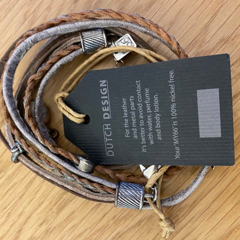 Naisen ranteeseen sopiva nahkainen rannekoru magneettilukolla.