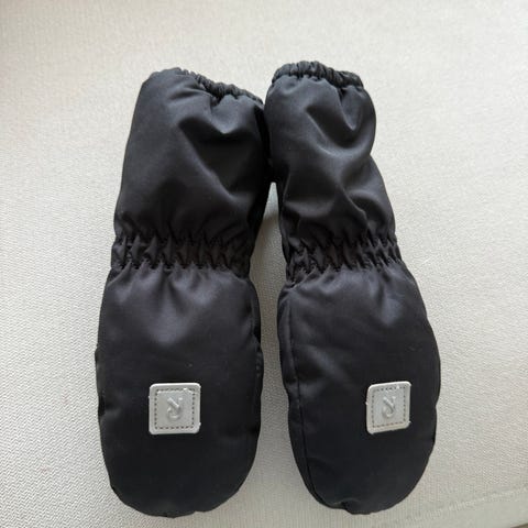 Mustat Reiman Tassu toppahanskat koossa 1 eli 6-18kk. Pukemista helpottavat vetoketjut sivuilla. Hanskat ovat hengittävää tuulta ja vettä hylkivää materiaalia, kuitenkaan nämä eivät ole täysin vedenpitävät. Kunnoltaan vastaavat uutta, meillä ainoastaan pari kertaa kokeiltu käsiin (olivatkin meille liian pienet) enkä ole pessyt.