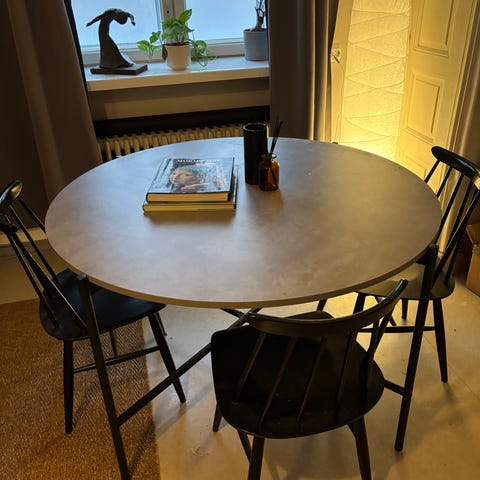 Kalusteet ovat siistit ja tukevat, normaalia käytön jälkeä voi olla. Sopii hyvin keittiöön tai ruokailutilaan.