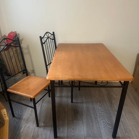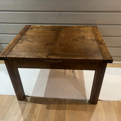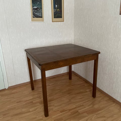 Käytön jälkiä löytyy mutta hiottavissa pois. Kunto merkattu ”kohtalainen” pinnan naarmujen takia. Muuten tukeva ja hyväkuntoinen.