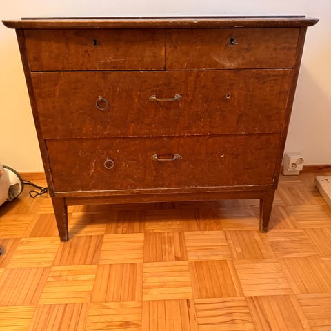 Myydään vanha puinen lipasto/senkki. Muutoin hyvä kunto, mutta laatikoiden ja kaappien vetimet kiinnitetty vain keskeltä. Vetimet hyvässä kunnossa, voi varmasti kiinnittää kunnolla tai halutessaan vaihtaa. Kts.kuvat.