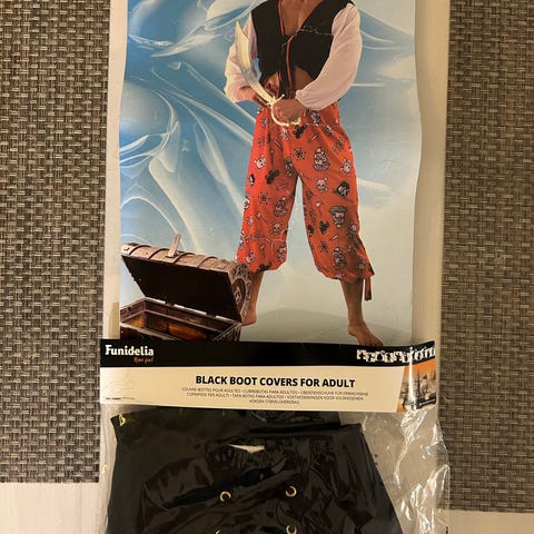 Paketti sisältää röyhelöpaidan, nahkaliivin, merirosvohatun, miekan ja silmälapun.