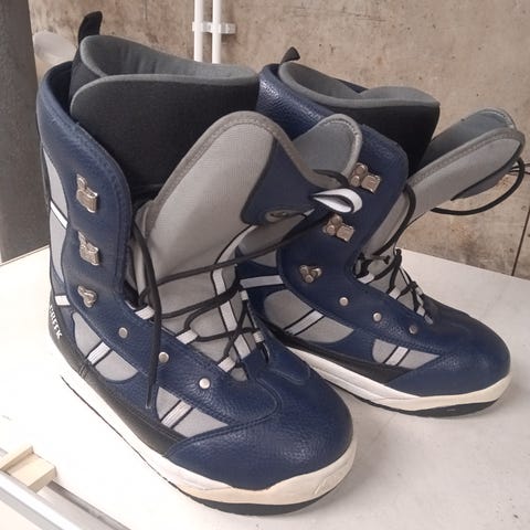 Muutaman kerran käytetyt mustat lumilautakengät. Kenkä sopii ennemmin 44-45 kokoiselle jalalle, vaikka kokolapussa lukee 47 Kengät on valmistettu kestävästä materiaalista ja niissä on pitävä pohja.