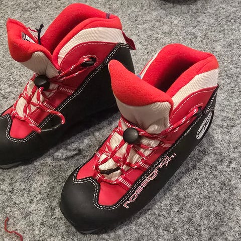 Rossignol lasten hiihtomonot, värit punainen ja musta. Monot soveltuvat lasten käyttöön ja ovat suunniteltu hiihtoon. Kengissä on tukeva pohja ja ne on valmistettu kestävistä materiaaleista. Koko 34.