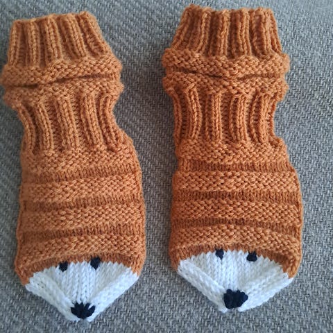 Vaaleanpunaiset valkoisella kärjellä. Pohjan pituus n. 9,5 cm, joten soveltuu vastasyntyneelle. Lanka: Merino 4ply & baby merino.