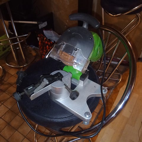 Vähäisellä harrastekäytöllä olut teroituslaite, hyväkuntoinen ja siisti, tarpeettomana. Oletko kyllästynyt viilojen kanssa kikkailuun? Tällä saat tasalaatuisen teroituksen ja kaikki hampaat pysymään samanpituisina, sahaus ei puolla!