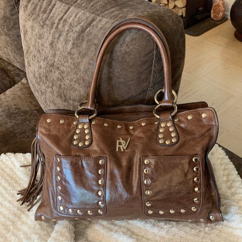 baccio laukku paksua nahkaa. Lev. n. 42 cm ja kork. n. 30 cm, hihnan pituus 95 cm.