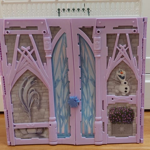 Myydään hyvässä kunnossa oleva Frozen linna sekä Anna ja Elsa barbit. Linnan korkeus 80cm, se saa taitettua kasaan. Linnaan kuuluu tuolit ja leipäkori ja juomat. Anna ja Elsa -barbit sekä lautaset ja peitto+tyyny ovat lisä-tavaraa. Barbit ovat 27 cm pitkiä. Annan ja Elsan hiukset ovat takkuuntuneet.
