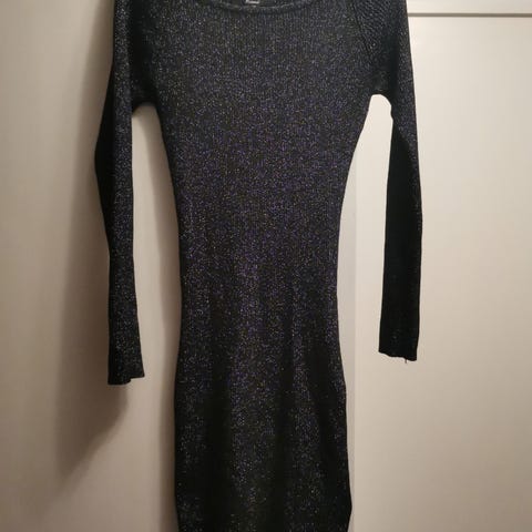 Tummanharmaa pitkä neulemekko.