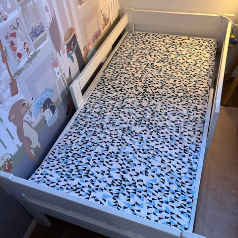 Myydään valkoinen laidallinen jatkettava lastensänky. Sänky on mäntyä ja siinä on jatkettava rakenne. Sängyn reunoissa maalissa vähän kulumaa (ks kuvat). Sängyn mitat: leveys 86cm x pituus 135 tai 165cm lukittuna. Sänkyä voi kuitenkin käyttää myös ilman lukituksia. Patjakoko: 75 cm x 100 - 184 cm.