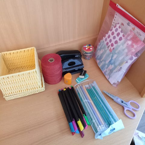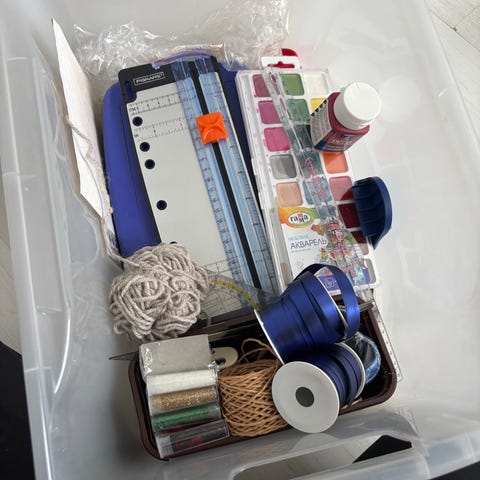 Askartelusetti, sisältää 10 erilaista pientä rasiaan, joissa glitteriä ja pieniä helmiä eri väreissä ja 2 pensseliä. Liimapuikko voi olla kuivunut.