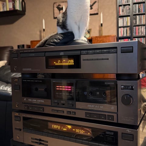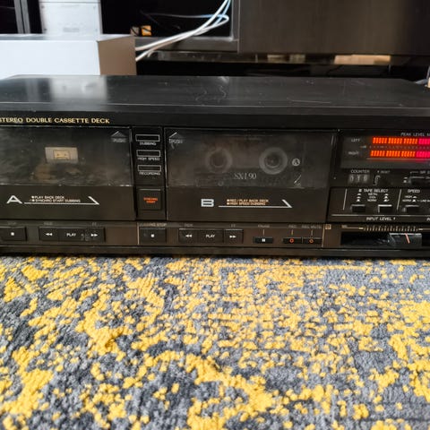 Muuten hyväkuntoinen ja vähän käyttetty, mutta kasettisoittimen vasen ulostulo rätisee välillä, nähtävästi kosketus häiriö?!