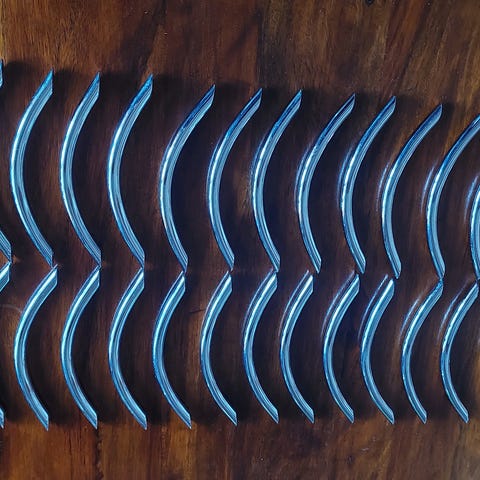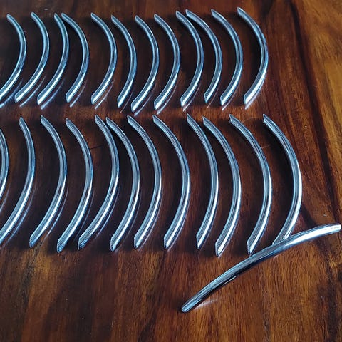 Myytävänä kromatut, tukevat, kaappien vetimet. Kulmikas malli. Painavat. Löytyy 22kpl