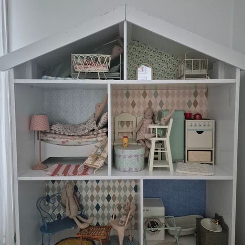 Kauniin sävyinen Mailegin puinen vedettävä kärry. Uudenveroinen kunto, tulee alkuperäispakkauksessa.