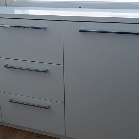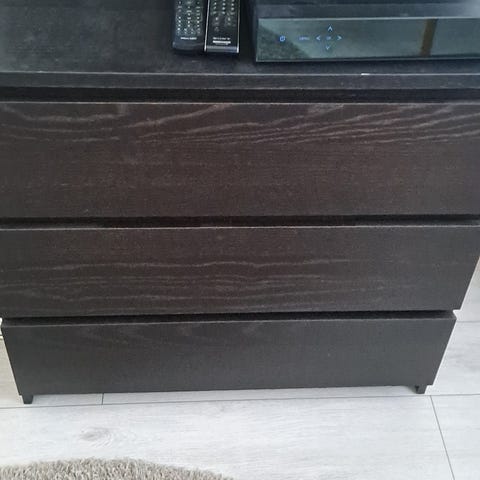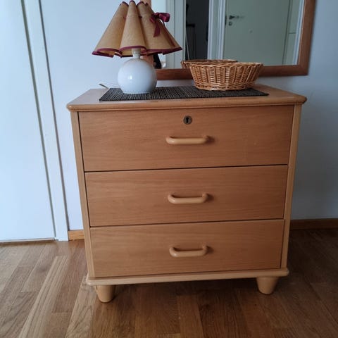 Elämää nähnyt, mutta vielä ihan ryhdikäs lipasto koreilla, fiksaamalla/maalaamalla saa vielä ihan siistin.