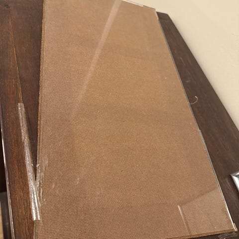 Kirkas lasilevy, koko noin 120 cm x 60 cm. Soveltuu erilaisiin käyttötarkoituksiin, kuten pöytälevyksi tai kipinäsuojaksi.