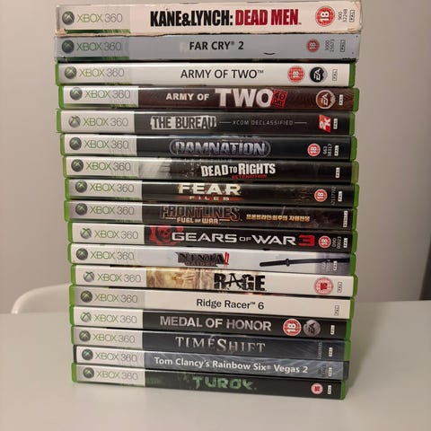 Myydään pakettina neljä Xbox360 -peliryhmään kuuluvaa peliä.