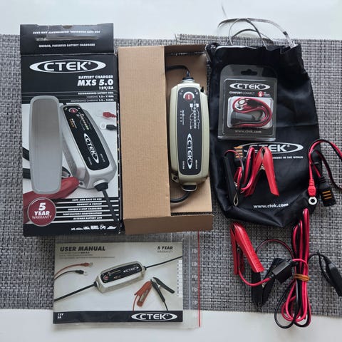 Maksimi latausvirta 7A. Lataa kaikki 12V lyijyakut 14-150Ah. Soveltuu akun normaalin lataamisen lisäksi pitkäaikaiseen ylläpitolataukseen (max 225Ah). Voidaan käyttää myös geeliakkujen lataamiseen, syväpurkautuneen akun elvytykseen, ja sulfatoituneen akun herätykseen. Laturia voi käyttää myös virtalähteenä akun vaihdon aikana. 8-vaiheinen lataus, täysautomaattinen lataussykli. IP65-akkulaturi. Ostettu 19.8.2025 eli 60kk takuuta reilusti jäljellä ja kuitin saa mukaan. Setistä puuttuu rengasliittimillä varustettu laturijohto, muuten täydellinen setti ja mukaan tulee käyttöohjeet sekä säilytyspussi. Vaikka rengasliittimet puuttuu, laturin käyttö onnistuu mukana olevilla hauenleukaliittimillä. Rengasliittimiä myydään esimerkiksi Motonetissä jos niihin syystä tai toisesta ilmaantuu tarvetta.