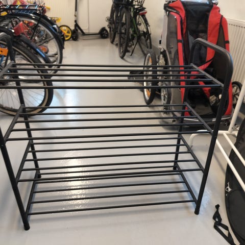 Muuton tieltä kaksi kenkätelinettä yhteishintaan 10€. Ovat harmaata metallia ja yleisilmeeltä hyvin siistit.