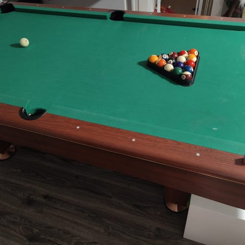 Tuo 6' Bilispöytä olis ylimääräisenä.Ei ole kivipöytä eikä ole uusi. Vallit liimattu uudelleen kiinni, kun repsottivat. Pussit pitäisi myös kiinnittää paremmin. Mitat on n.210x150cm. Muutema keppi, kolmio ja pallot matkaan. Pallot vaatii vahausta.