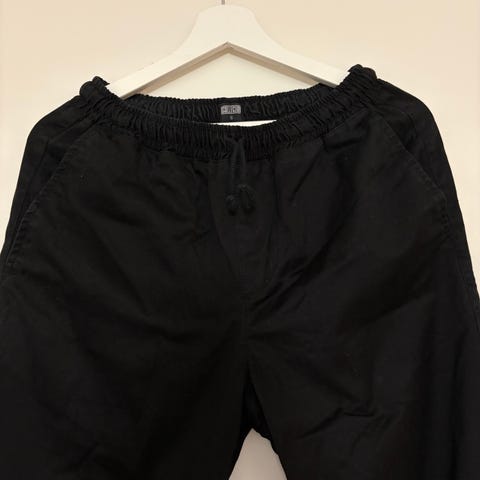 Mustat hyväkuntoiset resorilahkeiset anorakkihousut. Väri pysynyt hyvänä ja muutenkin tosi hyvässä kunnossa. Ainoa moite on että takasauman koristesauma/päällisauma vähän rikki, mutta ei vaikuta käyttöön, koska varsinainen sauma on kunnossa. Tämä on näissä housuissa yleinen vika että kuluu heti puhki. Kaupassa 139e.