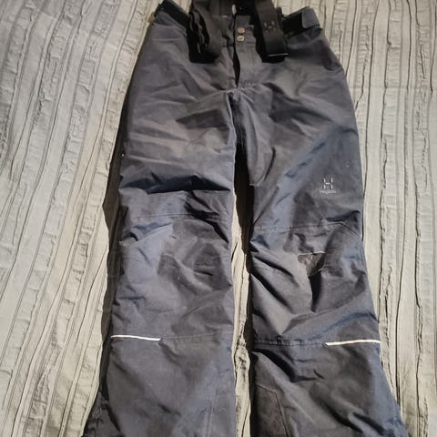 Haglöfs toppahousut 152cm, karheumaa ja pieniä reikiä polvissa ja lahkeissa, katso kuvat. Irrotettavat olkaimet.