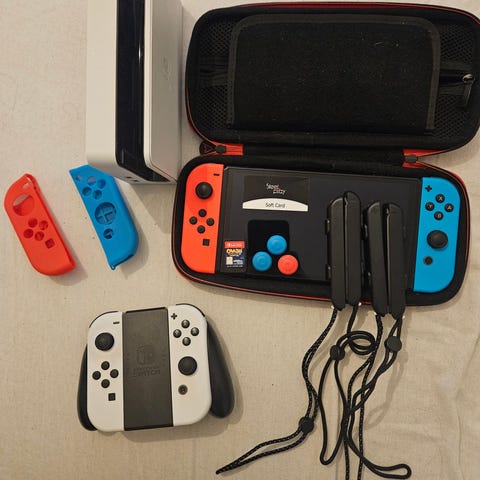 Nintendo Switch OLED -pelikonsoli, ostettu uutena toukokuussa 2024. Konsoli on hyvässä kunnossa ja ollut todella vähäisellä käytöllä viime kesästä lähtien, kun tuli ostettua Switch 2. Näytössä on ollut alusta alkaen panssarilasi, joten näyttö on erinomaisessa kunnossa.