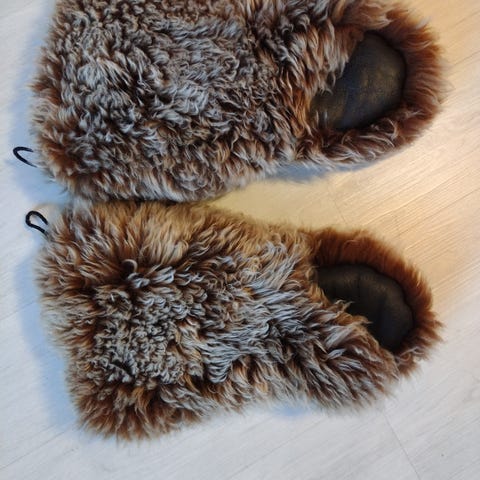 Turkiskintaat, aitoa lammasta. Kämmentä vasten lyhytakarvainen kihara villa (kuvissa kuva taljasta).