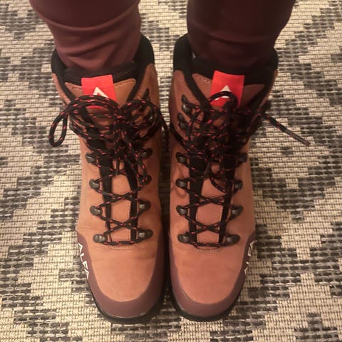 Käytetty muutamia kertoja tunturihiihtoon. Puhtaat ja siistit. Ulkopuolella hieman jälkiä nahassa, katso kuvat.