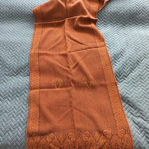 Käsinneulottu uudenveroinen / käyttämätön ruskea villahuivi.