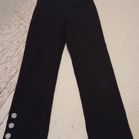 Trimtex urheiluhousut koko 140cm. Etupuolella tuulenpitävä kangas polviin saakka. Nilkoista avautuvat vetoketjut. Takapuolella joustava kangas.