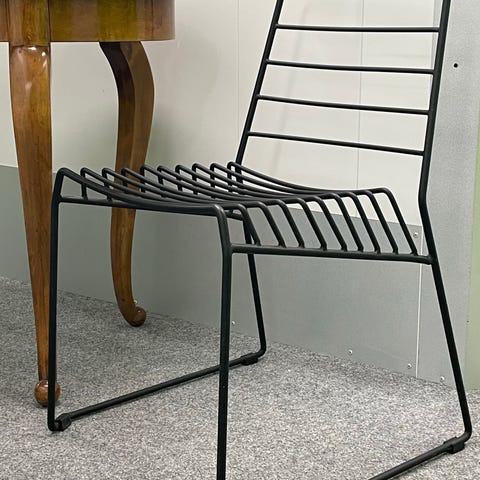 Kaunis ja persoonallinen tuoli. Hopean värinen. Ei massatuotantoa. Sopii moneen sisustukseen.