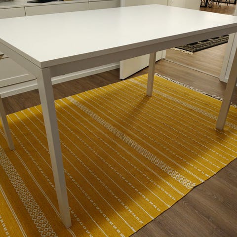 Ruokapöydäksi, apu- tai työpöydäksi, metallijalat ja runko.