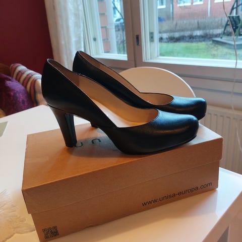 Mokkanahkaiset korkkarit. UK koko 6. Koko noin 38-39. Hieman tummaa hankaustahraa kenkien alaosassa, mikä ei juurikaan näy. Katso kuvat.