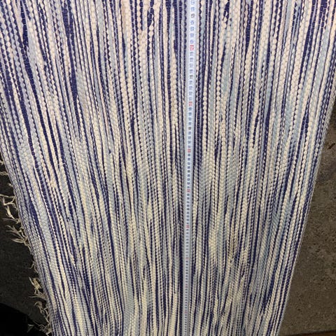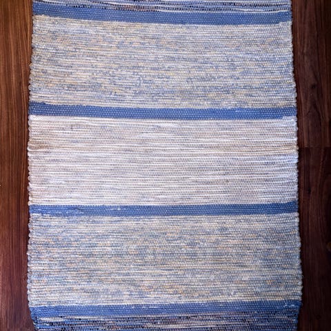 Mummon tekemä räsymatto, koko noin 140x200cm. Viime kesänä pesty, jotain laikkua löytyy mutta uskon että lähtee pesussa. Toinen puoli siistimpi, toisella puolen värin tummumaa (viimeinen kuva). Haku Tampereen Santalahdesta.