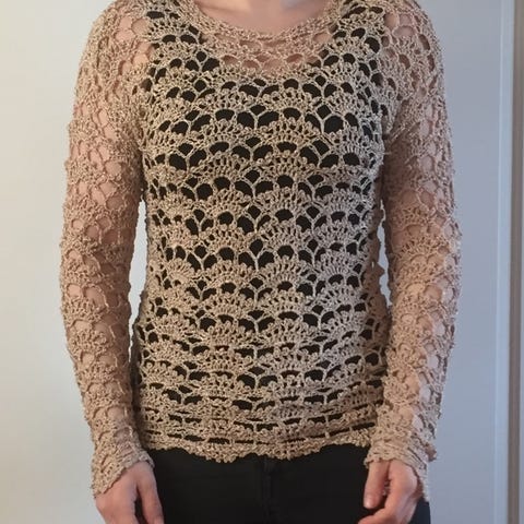 Koko: vastaa kokoa M ( kainalo-kainalo 50 cm , joustaa 70 cm asti , niska-helma 50 cm ja kainalo-hihansuu 31 cm )