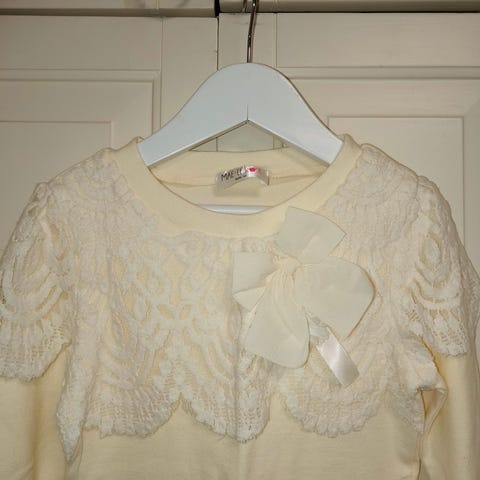 Uusi, kaunis rusettipaita, koko 140. Edessä napit. Ei kertaakaan käytetty, vain sovitettu.