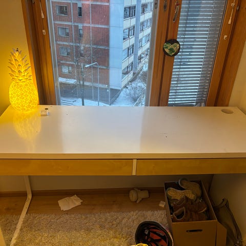 Annetaan työpöytä. Nouto Punavuoresta arki-iltaisin tai viikonloppuna. Pöytä lähtee lahjoituksen 30.1. Muuttopäivänä. Joten nouto ennen sitä.