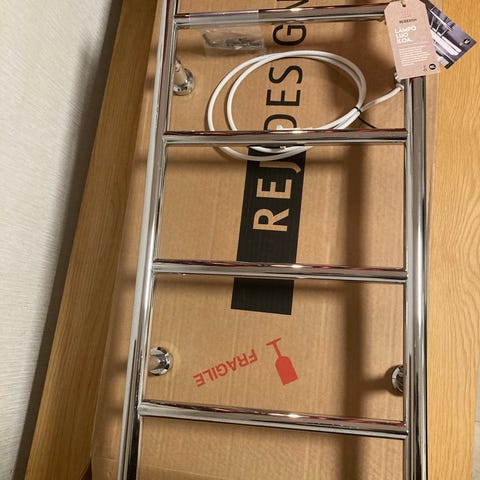 REJ-DESIGN EH 50744 sähköinen pyyhekuivain, kromattu viimeistely, teho 60W, Vasen. Käyttöjännite 230V. Mitat noin K74,5, L53 cm. Hyvässä kunnossa.