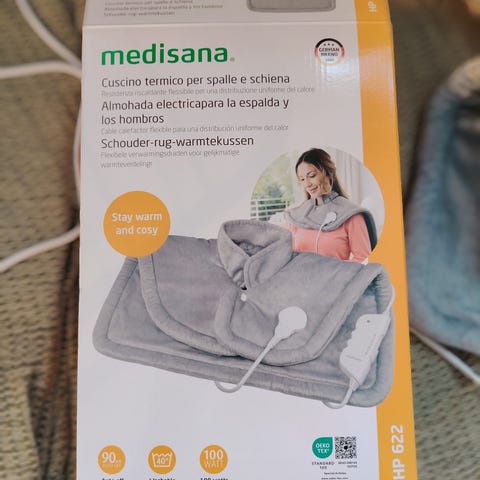 Erinomaisessa kunnossa oleva kerran kokeiltu hartialämmitin, jossa eri tehoja. Saa hyvin kiinni neppareilla, jolloin lämpö kohdistuu hyvin hartia- ja niskaseudulle. Postikulut 8,9 lisätään (tammikuun tarj. 7,4e Matkahuollolla), noutaakin sopii.