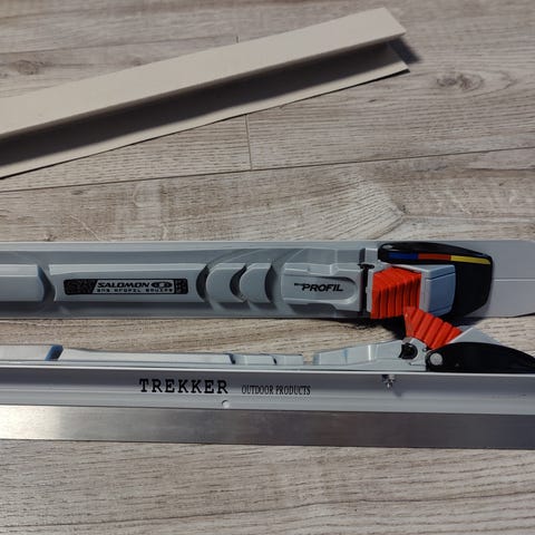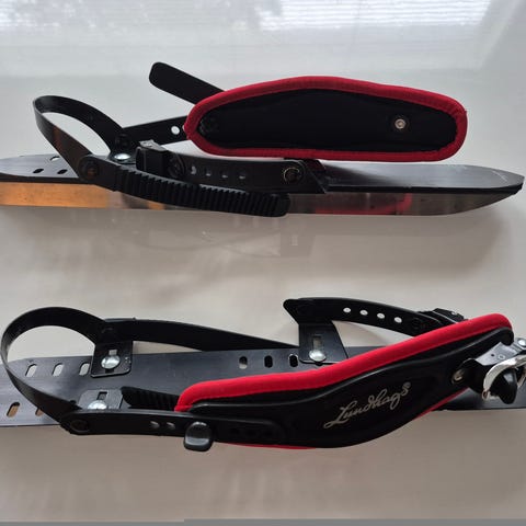 Hyväkuntoiset retkiluistimet telemark-monoihin tai muihin kenkiin, joissa edessä ”huuli”. Tuunaamalla remmillä saattavat toimia muillakin kengillä.