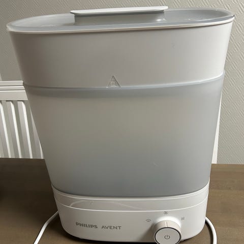 Ostettu lokakuussa 2024, käytetty 4 kuukauden ajan ja sen jälkeen puhdistettu ja varastoitu. Käytetty pääasiassa rintapumpun osien sterilointiin ja satunnaisesti tuttipullojen sterilointiin. Helpottaa arkea, sillä laitteessa on myös kuivaustoiminto. Laitteessa on jonkin verran mineraalikertymiä (katso kuva), mutta ne eivät vaikuta käyttöön.