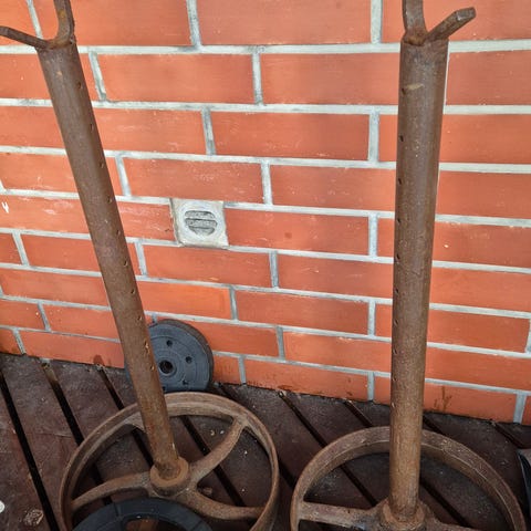 Punnuksia, jotka ovat olleet treenikäytössä kahvakuulien tapaan mm. pihalla.