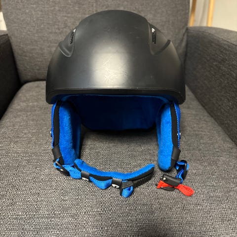 Lasten laskettelukypärä ja lasit. One size, koko säädettävissä "rullalla", mutta olisiko arviolta max 50cm halkaisija.