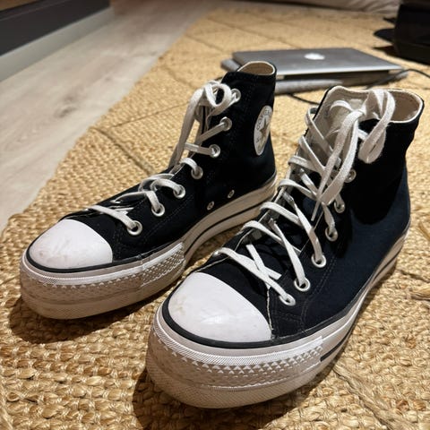 Myydään tyylikkäät Converse talvikengät beessissä sävyssä. Kengissä on paksu, kuvioitu platform-pohja, joka tuo lisämukavuutta, pitoa ja katseenvangitsijaa ilmettä. Nilkkamallinen varsi ja lämmin sisus tekevät näistä loistavan valinnan viileämpiin keleihin.