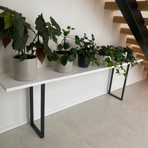 Sivupöytä tai kevytrakenteinen työtaso ja pieni taso esim eteiseen tai kukkapöydäksi. Pienemmän mitat leveys 50, syvyys 35 ja korkeus 66. Myydään yhdessä ja noudettuna!